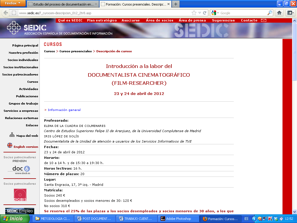 Curso de formación en SEDIC-Asociación Española de Documentación e Información.